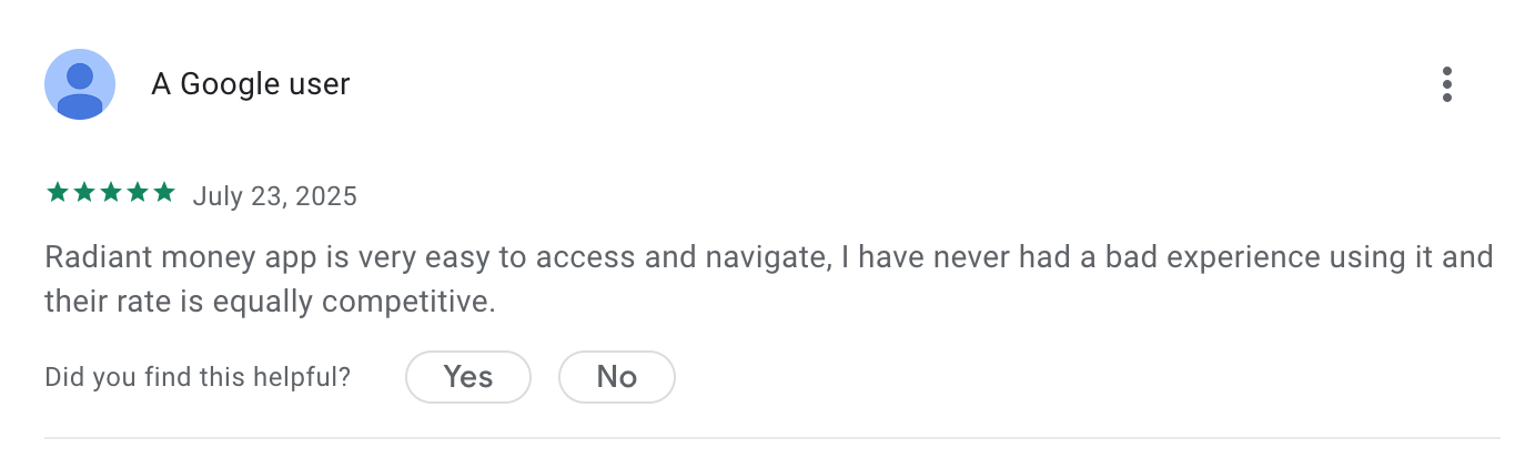 Answer: Radiant Money customers can receive funds from any bank within the countries and territories supported by Radiant Money.